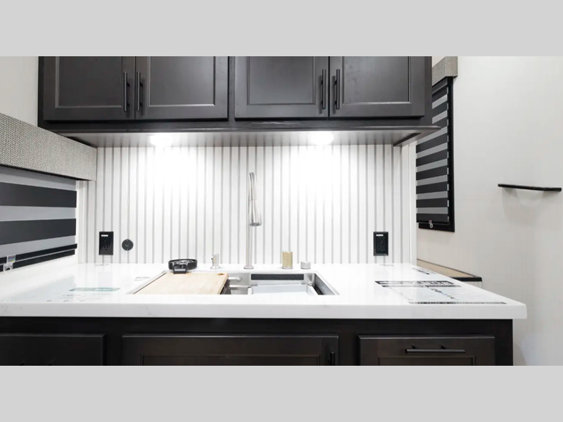 Weighing in at approximately 6,012 kilograms, this fifth wheel is engineered for stability and ease of towing, ensuring a smooth journey to your destination. The interior layout is thoughtfully designed to maximize space and utility, featuring a well-appointed kitchen, a cozy living area, and ample sleeping arrangements. The master suite offers a private retreat, while additional sleeping spaces ensure everyone has a comfortable place to rest. The high-quality finishes and modern amenities throughout the RV create an atmosphere of sophistication and convenience.