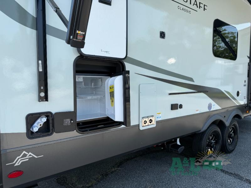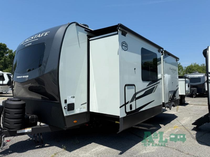 Discover the ultimate in luxury and convenience with the 2026 Forest River RV Flagstaff Classic 826MBR Travel Trailer. Perfectly designed for couples or solo adventurers, this travel trailer offers a cozy and intimate retreat on wheels. With its sleek design and modern amenities, it promises to elevate your travel experience to new heights. Measuring approximately 24 feet in length, this compact yet spacious RV is easy to tow and maneuver, making it ideal for both seasoned travelers and RV newcomers.