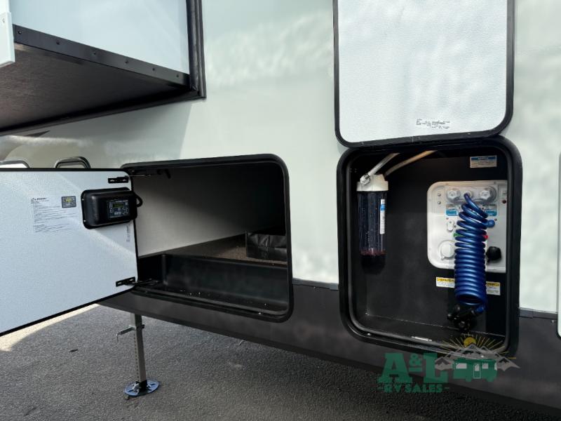The Flagstaff Classic F361RLS features three slide-outs, significantly expanding the interior living area to ensure maximum comfort. This RV is thoughtfully designed to accommodate up to four people, making it perfect for small families or couples seeking a luxurious getaway. The interior boasts high-quality finishes and a well-appointed kitchen, complete with modern appliances, providing all the conveniences of home. The living area is designed for relaxation, featuring plush seating and entertainment options that make it easy to unwind after a day of adventure.