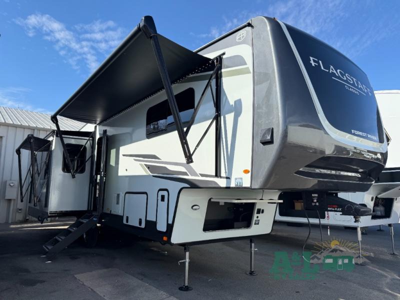 Introducing the 2026 Forest River RV Flagstaff Classic F361RLS Fifth Wheel, a pinnacle of luxury and comfort for the discerning traveler. This meticulously crafted RV offers an unparalleled experience on the road, combining spaciousness, modern amenities, and robust construction. With a length of 30 feet, this fifth wheel is designed to provide ample living space while maintaining ease of maneuverability, making it an ideal choice for both seasoned RV enthusiasts and newcomers alike.