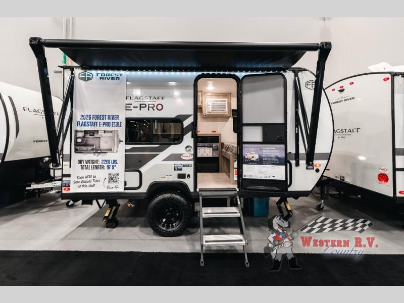 Discover the perfect blend of adventure and comfort with the 2026 Forest River RV Flagstaff E-Pro E13LE Travel Trailer. Designed for those who crave the open road without sacrificing the comforts of home, this compact yet spacious travel trailer is your ticket to unforgettable journeys. With a length of 13 feet, it’s easy to tow and maneuver, making it ideal for both seasoned travelers and RV newcomers alike.