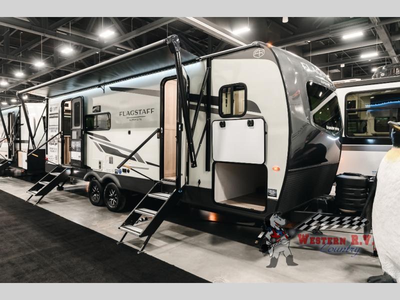 The Flagstaff Super Lite 26SRD features two slide-outs, significantly enhancing the interior living space to ensure maximum comfort. It comfortably sleeps four, making it perfect for small families or couples seeking a cozy retreat. The thoughtful layout includes a well-appointed kitchen, a spacious living area, and a comfortable sleeping arrangement, ensuring that every journey is as enjoyable as the destination. The interior design is both modern and functional, with high-quality finishes and practical amenities that cater to all your needs on the road.