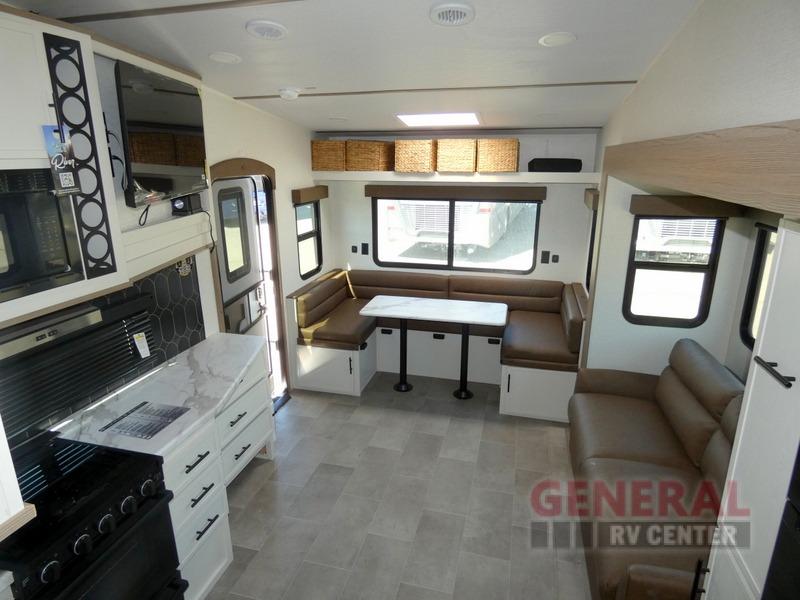 The Impression 242RD is thoughtfully designed to accommodate up to four individuals, making it perfect for small families or couples who appreciate extra space. Inside, you will find a well-appointed interior featuring modern amenities and high-quality finishes. The living area is spacious and inviting, providing a perfect setting for unwinding after a day of adventure. The kitchen is equipped with state-of-the-art appliances, ensuring that meal preparation is both convenient and enjoyable. The sleeping quarters offer a restful retreat, with plush bedding and ample storage to keep your belongings organized.