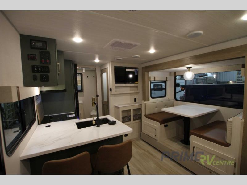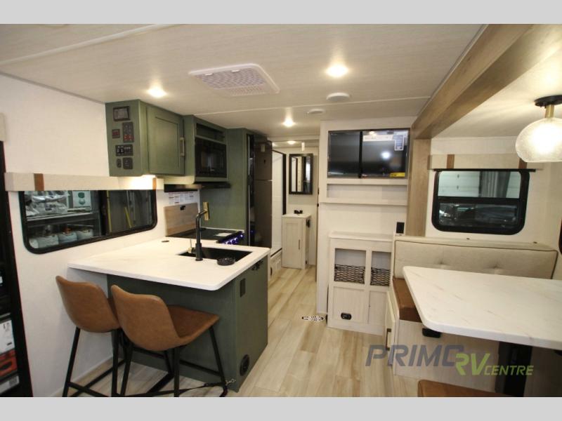 Step inside to find a thoughtfully designed interior that maximizes every inch of space. The single slide-out expands the living area, providing a cozy environment for relaxation and entertainment. With sleeping accommodations for up to three people, this RV is ideal for couples or small families seeking adventure. The well-equipped kitchen, complete with modern appliances, allows you to prepare meals with ease, while the comfortable seating area is perfect for unwinding after a day of exploration.