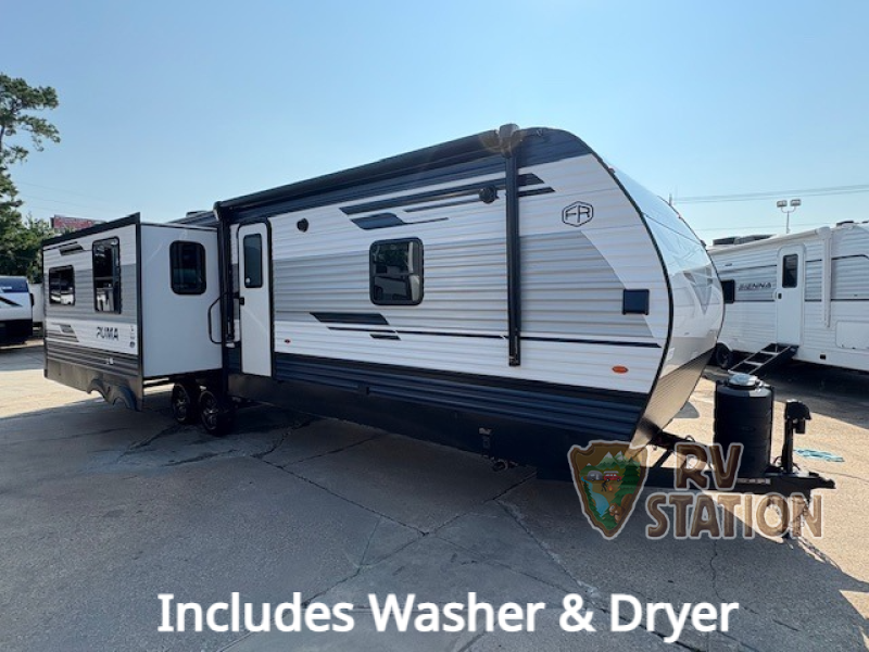 The Puma 31RLQS features three slide-outs, significantly expanding the living space to provide an open and airy environment. Inside, you'll find accommodations to comfortably sleep up to five people, making it perfect for family trips or gatherings with friends. The thoughtfully designed interior includes a well-appointed kitchen, a cozy living area, and a comfortable sleeping arrangement, ensuring that every night spent in the Puma is restful and rejuvenating. High-quality materials and modern finishes throughout the trailer add a touch of elegance and durability, promising years of enjoyment.