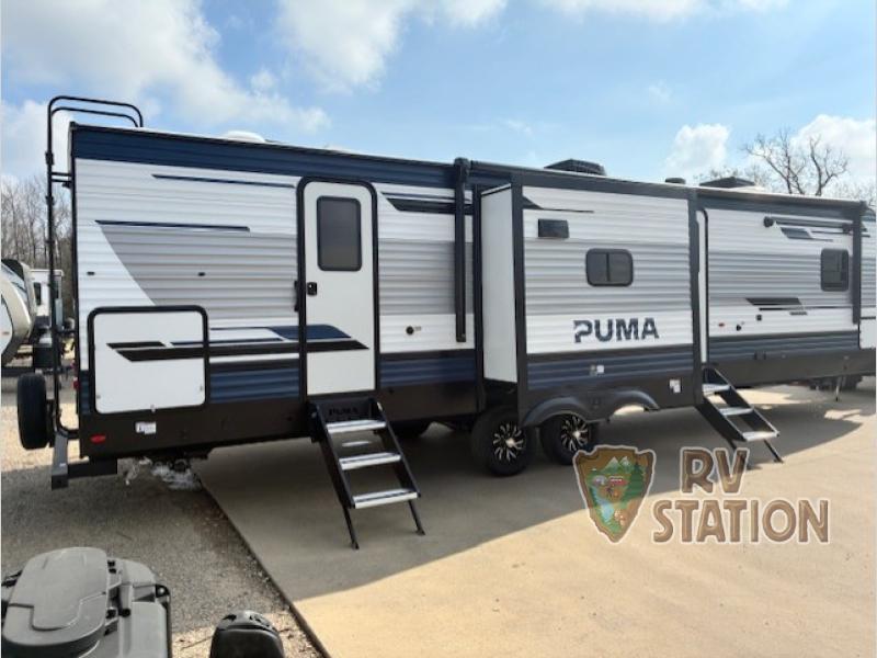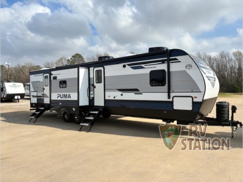 Discover the ultimate adventure companion with the 2026 Forest River RV Puma 32BH2B Travel Trailer! This spacious and stylish RV is perfect for families or groups looking to explore the great outdoors without sacrificing comfort. With three slide-outs, this travel trailer offers an expansive living area that ensures everyone has plenty of room to relax and enjoy. Measuring approximately 32 feet in length, the Puma 32BH2B is designed to provide a home-like experience on the road.