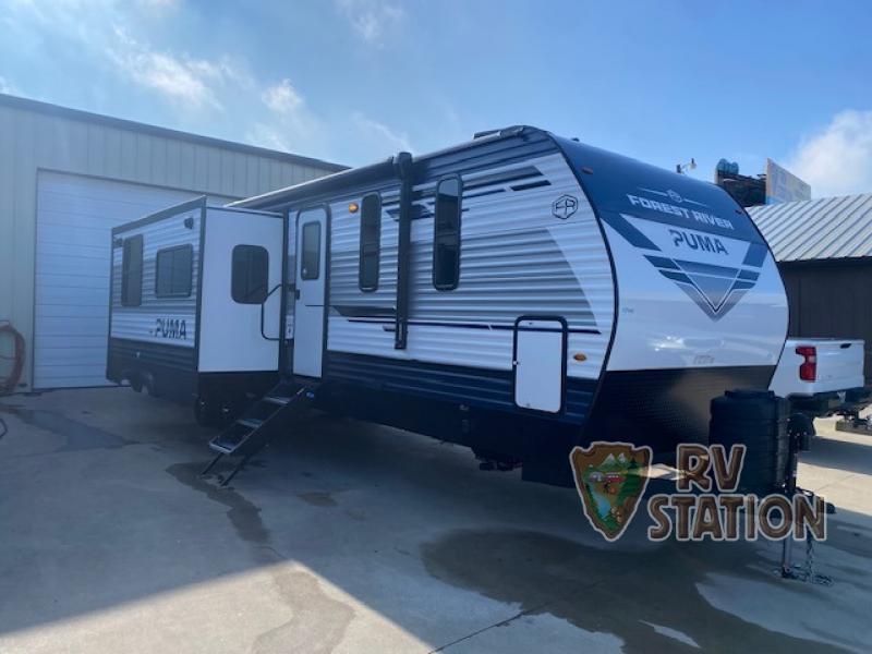 Introducing the 2026 Forest River RV Puma 340DB Travel Trailer, a remarkable blend of comfort, space, and modern design, perfect for those who seek adventure without compromising on luxury. This exceptional travel trailer, measuring approximately 31 feet in length, offers a spacious and inviting environment for families or groups of up to five people. With its four slide-outs, the Puma 340DB provides an expansive living area that ensures everyone has ample room to relax and enjoy their journey.