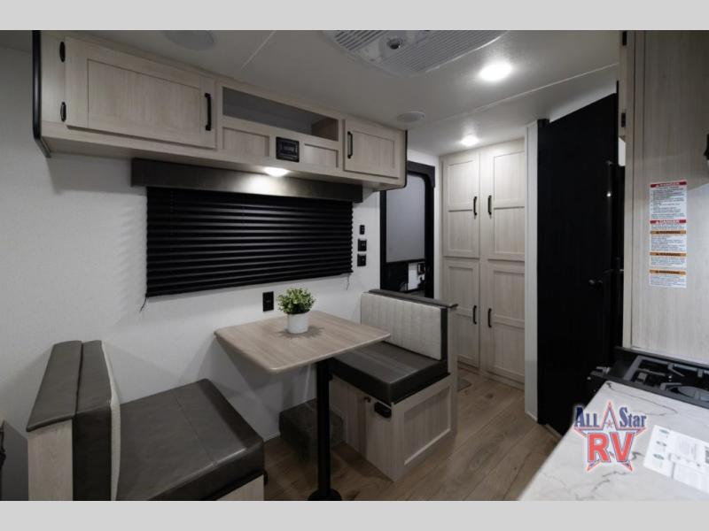 Inside, you'll find a cozy and efficient layout that comfortably sleeps up to three people. The thoughtfully designed interior maximizes space, offering a snug sleeping area, a compact kitchenette, and a cozy dinette that easily converts into an additional sleeping space. Whether you're enjoying a weekend escape or an extended road trip, this travel trailer provides all the essentials for a comfortable stay.