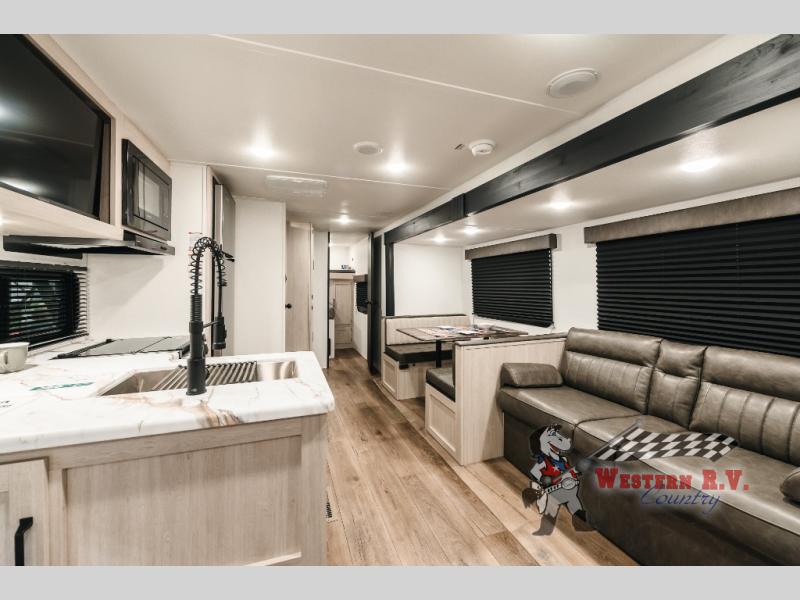 Weighing in at approximately 2,973 kilograms, this travel trailer is easy to tow, yet sturdy enough to handle all your camping needs. The Puma Camping Edition is built for those who love the open road but don’t want to sacrifice comfort. Inside, you’ll find a cozy living area, a fully-equipped kitchen, and a spacious bathroom. The sleeping arrangements are versatile, with a master bedroom, bunk beds, and convertible seating areas, ensuring everyone has a comfy spot to rest after a day of adventure.