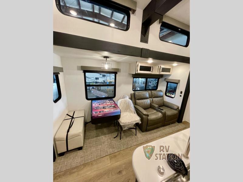 The Puma LOFT 421 boasts a thoughtfully designed sleeping area, featuring a master bedroom with a queen-sized bed and additional sleeping arrangements to accommodate up to eight people comfortably. The bathroom is equipped with modern fixtures, including a spacious shower and ample storage. With a total weight of approximately 4,500 kilograms, this travel trailer is engineered for stability and ease of towing. Whether you are exploring the countryside or setting up camp at your favorite destination, the 2026 Forest River RV Puma LOFT 421 Travel Trailer promises an unparalleled blend of comfort, style, and convenience.