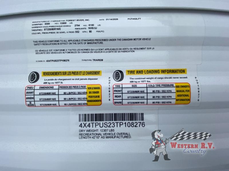 Weighing in at 5,379 kilograms, the Puma Vista is built for stability and durability, ensuring a smooth ride wherever the road takes you. Whether you're a seasoned RV enthusiast or a first-time buyer, this model is designed to make your travels hassle-free and enjoyable. Don't miss out on the chance to own this fantastic RV—it's your passport to endless adventures and unforgettable memories. Ready to hit the road? The 2026 Forest River RV Puma Vista 402LFT is waiting for you!