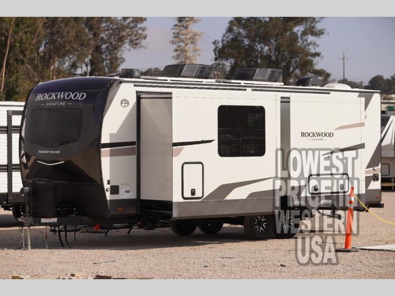 Introducing the 2026 Forest River RV Rockwood Signature 8263MBR Travel Trailer, a perfect blend of luxury and functionality for the discerning traveler. This meticulously crafted travel trailer, measuring approximately 24 feet in length, offers an exceptional experience for couples seeking a comfortable and stylish retreat on the road. With its sleek design and modern amenities, this RV is tailored to provide a seamless blend of comfort and convenience.