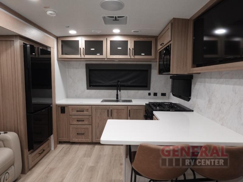 The Rockwood Signature 8263MBR features two slide-outs, significantly enhancing the interior living space to ensure maximum comfort. The intelligently designed layout is tailored for two, offering a cozy and intimate environment. The interior is adorned with high-quality finishes and modern amenities, making it an ideal choice for couples seeking a luxurious camping experience. The well-appointed kitchen, complete with state-of-the-art appliances, allows for effortless meal preparation, while the spacious living area provides a perfect setting for relaxation.