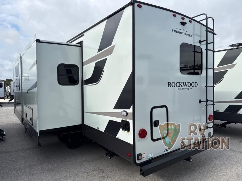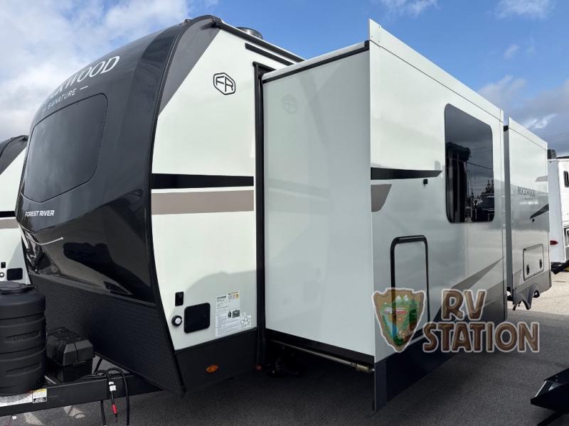 Outside, the Rockwood Ultra Lite 8263 continues to impress with its durable construction and thoughtful features. The exterior includes a large awning, perfect for enjoying the outdoors in any weather, and ample storage compartments to accommodate all your gear. With a dry weight of approximately 2,500 kilograms, this travel trailer is designed for easy towing, making it an ideal choice for both seasoned RV enthusiasts and newcomers alike. Don't miss the opportunity to own this exceptional travel trailer that combines style, functionality, and the freedom to explore at your own pace. Your adventure begins with the Forest River RV Rockwood Ultra Lite 8263.