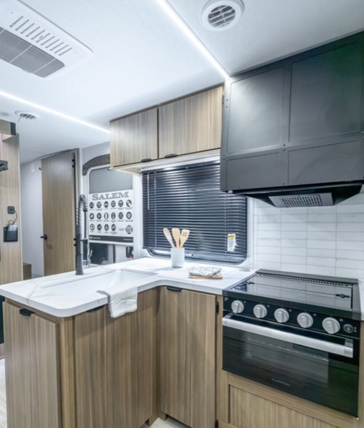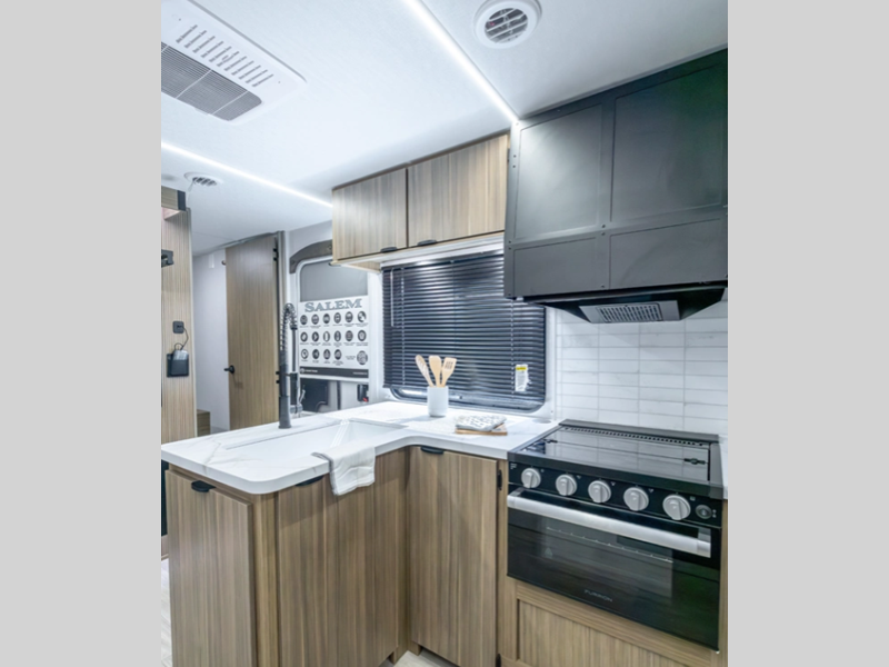Step inside and you'll find a spacious and cozy interior that feels just like home. The Salem 31KQBTS is designed with comfort in mind, featuring a roomy living area, a fully-equipped kitchen, and a comfy sleeping space that can accommodate the whole crew. With plenty of storage space, you can bring along all your gear and essentials without a worry. Plus, the modern amenities make life on the road a breeze, from the sleek appliances to the entertainment system that keeps everyone entertained on those long drives.