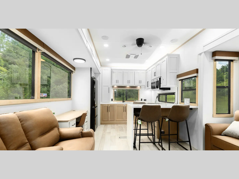 Inside, the Sandpiper 396RKLR comfortably sleeps up to four people, making it ideal for couples or small families. The well-appointed interior features high-quality furnishings and modern amenities to ensure your comfort. The kitchen is equipped with top-of-the-line appliances, allowing you to prepare meals with ease. The living area is designed for relaxation, with plush seating and entertainment options to keep you and your guests entertained.