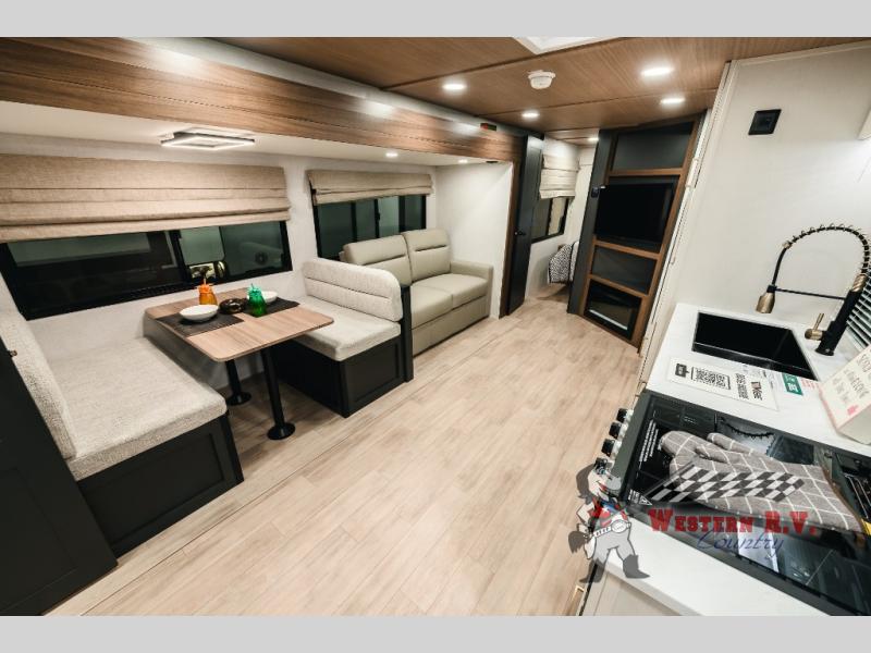 Step inside, and you’ll be amazed by the smart use of space. The single slide-out expands the living area, giving you plenty of room to relax and unwind. Whether you're planning a weekend getaway or a cross-country road trip, this RV comfortably sleeps up to 9 people, making it ideal for family outings or trips with friends. The interior is designed with modern finishes and practical features, ensuring you have everything you need on the go.