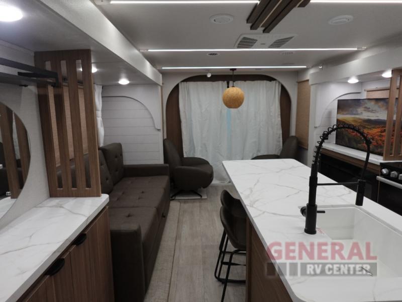 Inside, the Wildwood 270ZEN comfortably sleeps up to four people, making it perfect for small families or couples looking to explore the great outdoors without sacrificing the comforts of home. The intelligently designed layout maximizes space and functionality, ensuring a cozy and convenient living experience. The modern kitchen is equipped with all the essentials, while the living area offers a welcoming space to unwind after a day of adventure.
