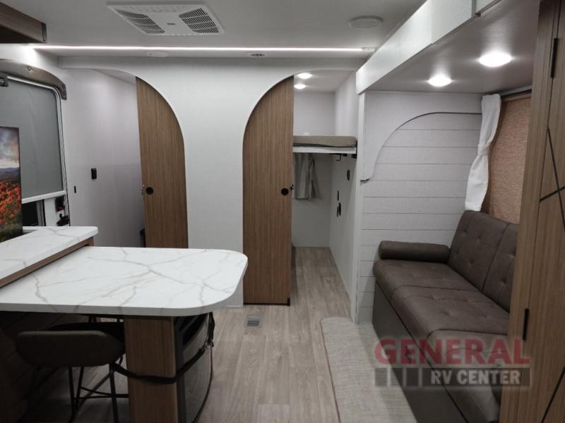 Step inside to find a thoughtfully laid-out interior that can comfortably sleep up to five people. The single slide-out expands the living area, providing extra room for relaxation and entertainment. Whether you're enjoying a meal at the dinette or unwinding on the plush seating, every inch of this RV is crafted to enhance your travel experience. The modern kitchen is equipped with all the essentials, ensuring you can prepare your favorite meals no matter where your journey takes you.