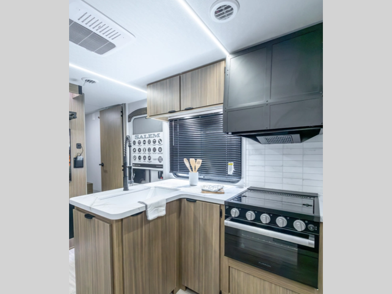 Weighing in at approximately 3,892 kilograms, the Wildwood 31KQBTS is built for stability and ease of towing. Its thoughtful design includes a well-equipped kitchen, a cozy living area, and a versatile sleeping arrangement, making it ideal for both short getaways and extended trips. The interior is crafted with high-quality materials, ensuring durability and comfort throughout your journey. The three slide-outs significantly enhance the living space, providing extra room for relaxation and entertainment.