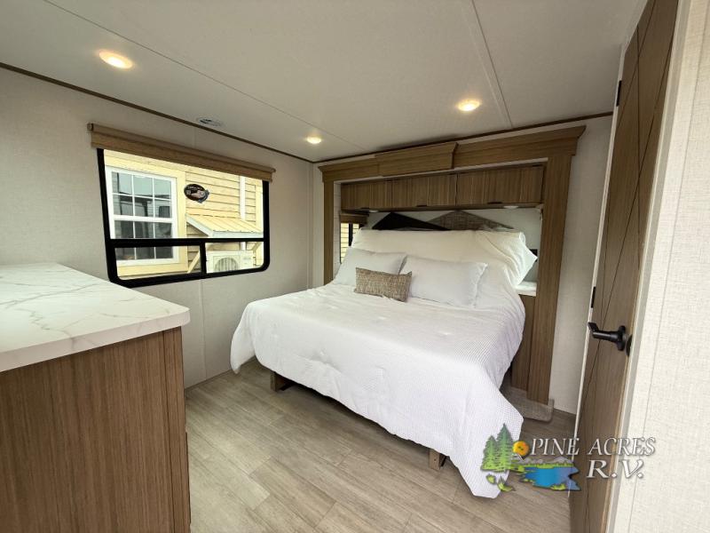 Inside, the Wildwood Grand Lodge is a haven of comfort, capable of sleeping up to seven people. Whether you're planning a weekend getaway or an extended vacation, this RV accommodates your needs with ease. The thoughtfully designed interior features plush seating, a fully equipped kitchen, and a cozy sleeping area, making it the perfect retreat after a day of exploration. The modern amenities and high-quality finishes create a welcoming atmosphere that feels just like home.
