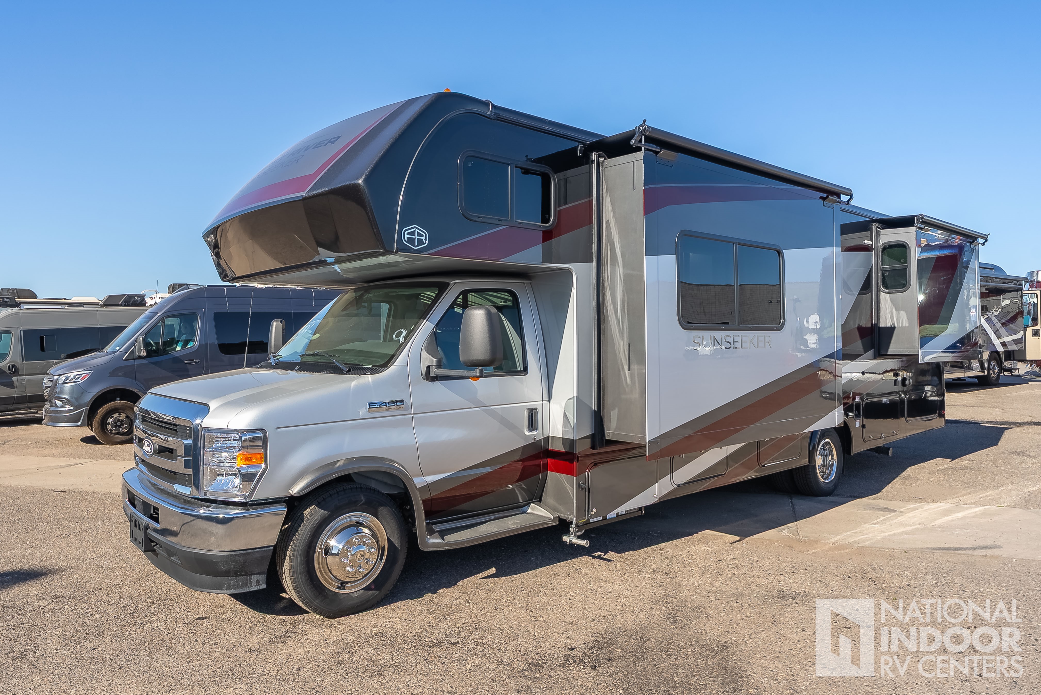 Step inside to discover a meticulously crafted living area that exudes sophistication and functionality. The well-appointed kitchen features modern appliances and ample counter space, ensuring meal preparation is a breeze. Adjacent to the kitchen, the dining area provides a comfortable setting for enjoying meals with family and friends. The living space is further enhanced by a cozy seating area, perfect for unwinding after a day of exploration. The Sunseeker's intelligent design ensures that every inch of space is utilized efficiently, providing generous storage options throughout.