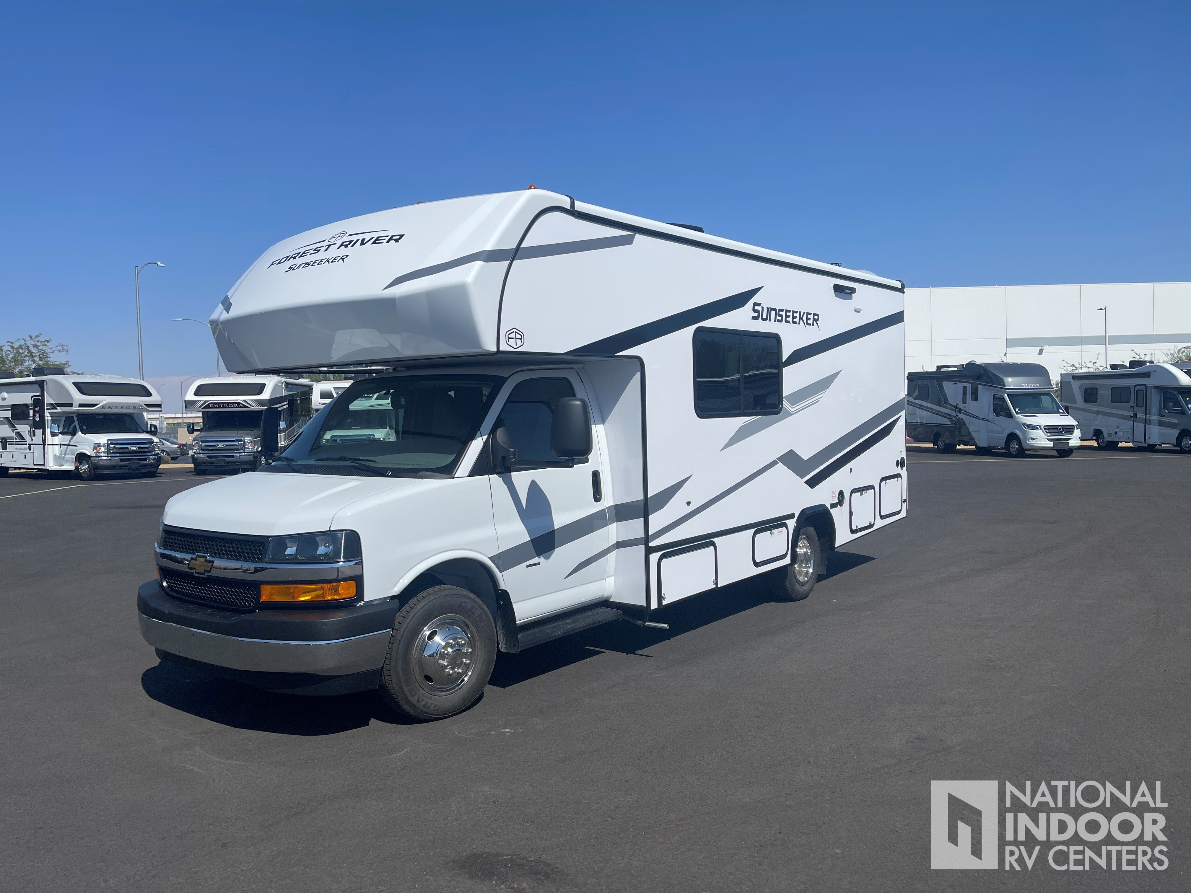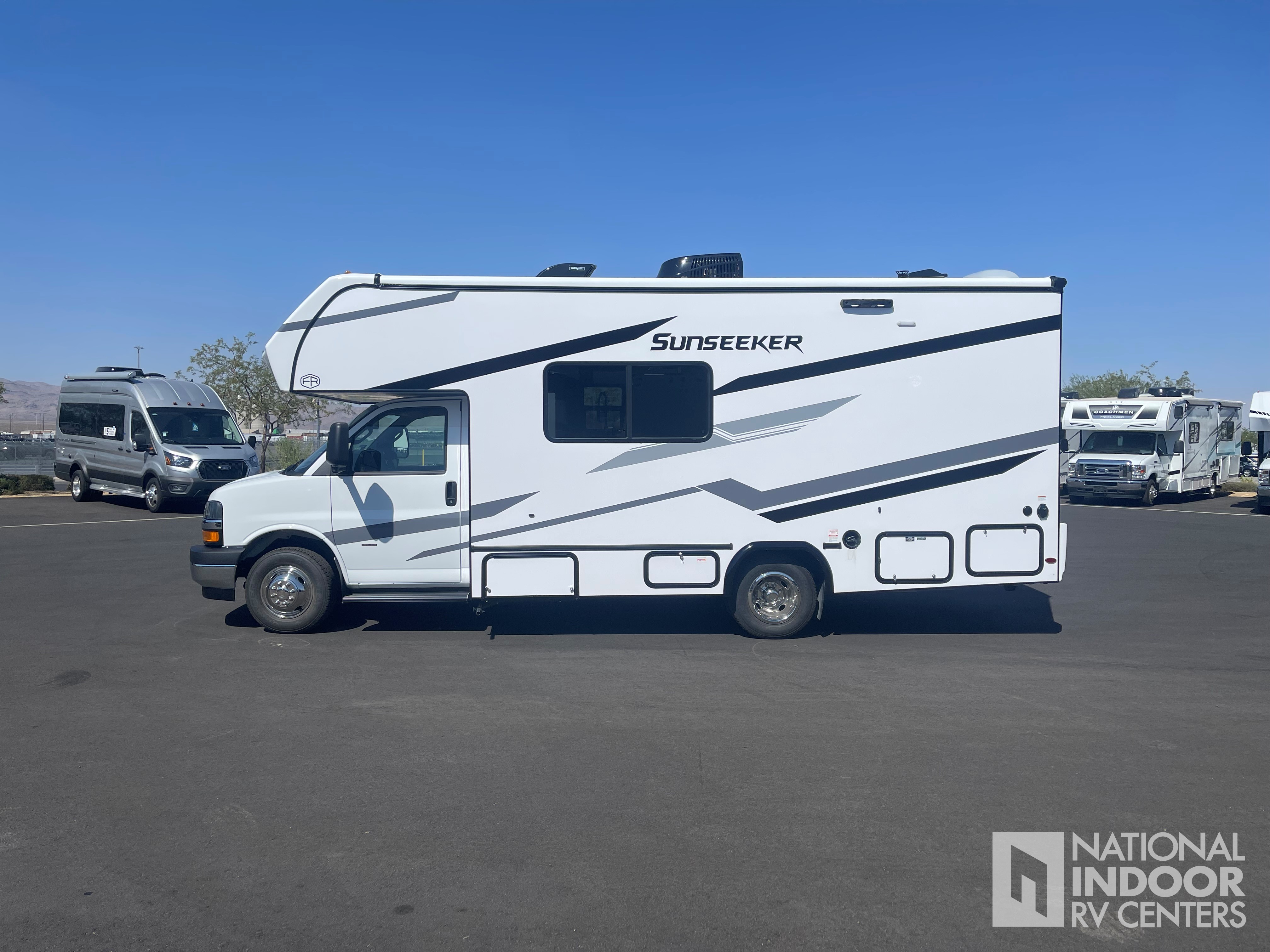 Inside, the Sunseeker LE 2350ALEC boasts a thoughtfully designed interior that maximizes space and convenience. The living area is equipped with premium furnishings, providing a cozy and inviting atmosphere for relaxation. The kitchen features state-of-the-art appliances, including a refrigerator, microwave, and stove, all designed to meet your culinary needs while on the road. The sleeping quarters offer a comfortable bed, ensuring restful nights after a day of adventure. Additionally, the RV includes a well-appointed bathroom with modern amenities, ensuring all the comforts of home are at your fingertips.