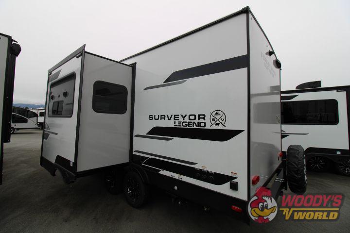 Step inside to discover a thoughtfully designed interior that maximizes both functionality and style. The Surveyor 202RBLE features a well-appointed living area, complete with a plush seating arrangement that invites relaxation. The kitchen is equipped with modern appliances, including a refrigerator and a microwave, all seamlessly integrated into the cabinetry to provide a sleek, uncluttered look. The dinette area, which comfortably seats four, can easily be converted into an additional sleeping space, making this travel trailer perfect for families or small groups.