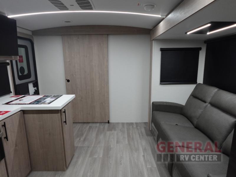 The Imagine 2300MK features a single slide-out that significantly enhances the interior space, providing a generous living area that ensures comfort and convenience. Designed to accommodate two people, this travel trailer is perfect for couples or solo adventurers who appreciate the finer things in life. The interior is thoughtfully arranged to maximize space and utility, featuring high-quality furnishings and state-of-the-art amenities that cater to your every need. From the fully equipped kitchen to the cozy sleeping quarters, every detail is crafted to provide a home-like atmosphere on the road.