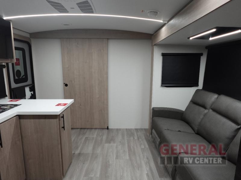 The Imagine 2300MK features a single slide-out, expanding your living area to provide a roomy and inviting atmosphere. Inside, you'll find a well-appointed interior that comfortably sleeps two, making it ideal for romantic getaways or solo journeys. The thoughtfully designed layout includes a fully equipped kitchen, a comfortable seating area, and a luxurious sleeping space, ensuring you have everything you need for a comfortable stay.