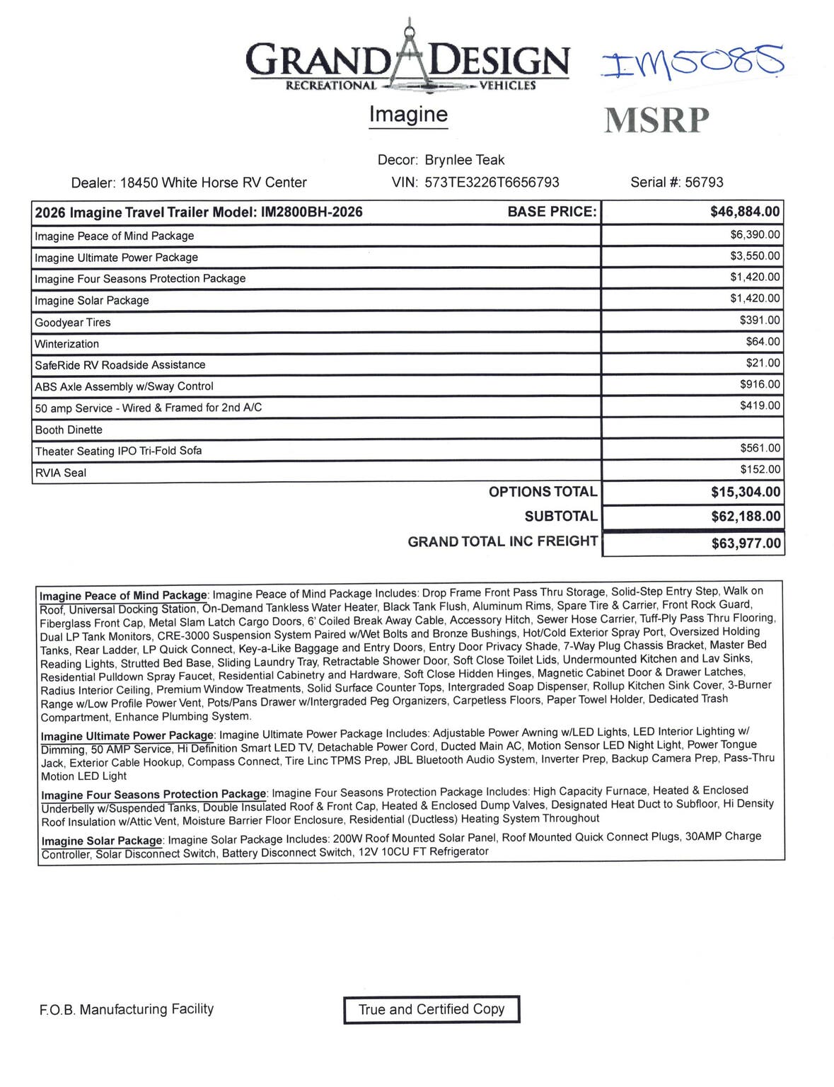 Weighing in at approximately 4,629 kilograms, this travel trailer is robust yet manageable, offering a perfect balance of durability and ease of towing. The Grand Design Imagine 2800BH is not just a travel trailer; it is a gateway to unforgettable adventures. Whether you are exploring the great outdoors or embarking on a cross-country journey, this RV promises reliability and comfort. Experience the freedom of the open road with the 2026 Grand Design Imagine 2800BH, where every detail is designed with your ultimate satisfaction in mind.