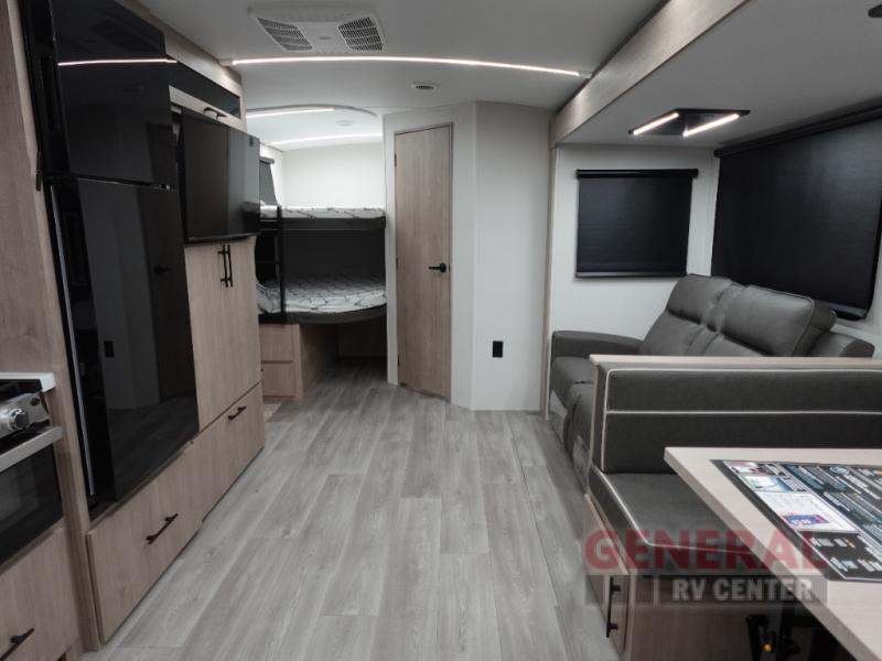 The Imagine 2800BH features a single slide-out, ingeniously expanding the interior to create a spacious and inviting environment. This model can comfortably accommodate up to 10 people, making it ideal for large families or groups of friends. The intelligently designed floor plan includes a master bedroom, double-over-double bunk beds, a convertible dinette, and a tri-fold sofa, ensuring everyone has a cozy place to rest. The interior is adorned with high-quality finishes and modern amenities, providing a luxurious home-away-from-home experience.