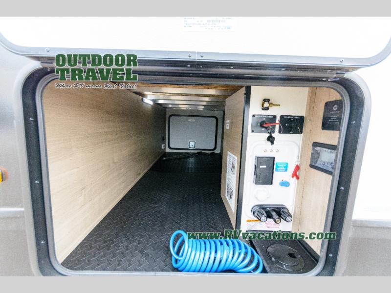 Inside, you'll find two slide-outs that create a roomy and inviting living space. Whether you're lounging after a day of exploring or hosting friends for a cozy evening, this trailer has you covered. It comfortably sleeps four, making it perfect for small families or couples who love to travel with friends. The interior is designed with modern touches and practical amenities, ensuring you have everything you need for a comfortable stay.