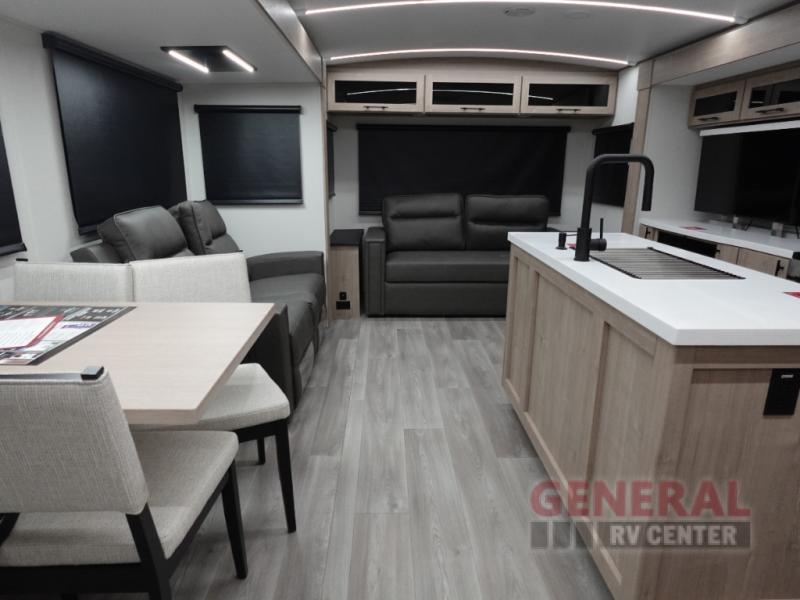 The Imagine 2970RL features two expansive slide-outs, ingeniously increasing the interior living space to accommodate up to four guests comfortably. The thoughtfully designed floor plan includes a cozy living area, complete with plush seating and a state-of-the-art entertainment system, perfect for unwinding after a day of exploration. The fully equipped kitchen boasts modern appliances and ample storage, allowing you to prepare gourmet meals with ease. The elegant dining area provides a welcoming space for family meals or intimate dinners.