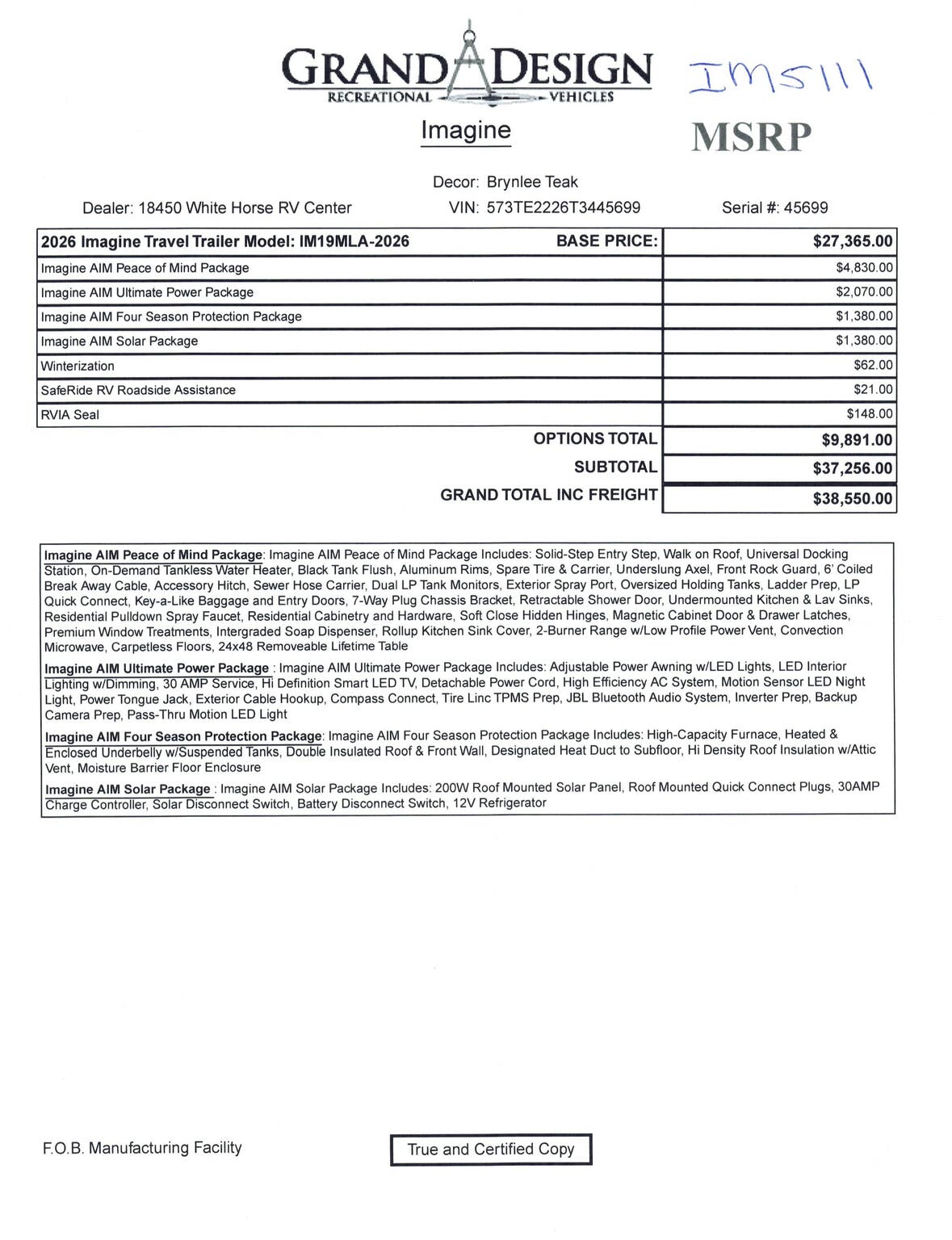 2026 Grand Design Imagine AIM 19MLA