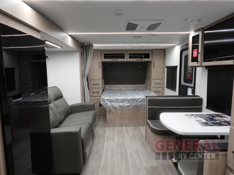 The Imagine XLS 22MLE features one slide-out, which significantly enhances the interior space, creating a roomy and inviting atmosphere. Inside, you'll find accommodations to sleep up to three people, making it ideal for couples or small families. The interior is thoughtfully designed with high-quality finishes and modern amenities, ensuring a luxurious experience. The kitchen is equipped with state-of-the-art appliances, ample storage, and a functional layout, making meal preparation a breeze. The living area is cozy and inviting, perfect for relaxing after a day of exploration.