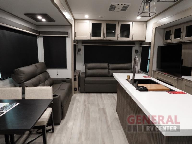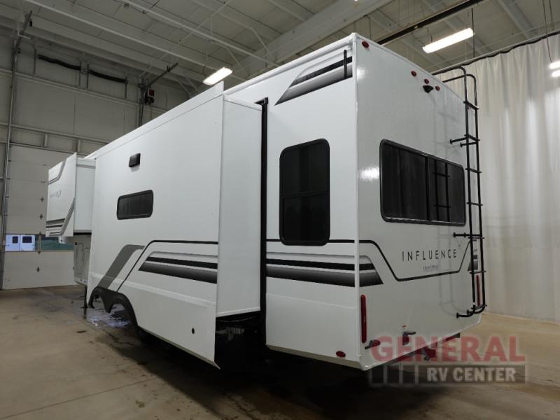 Step inside and be greeted by a spacious interior, thanks to its three slide-outs that create a roomy and inviting atmosphere. The Influence 2903RL comfortably sleeps four, making it ideal for small families or couples seeking a cozy retreat. The well-appointed living area features plush seating and a state-of-the-art entertainment system, ensuring you can unwind in style after a day of exploration. The kitchen is equipped with modern appliances and plenty of storage, making meal preparation a breeze.