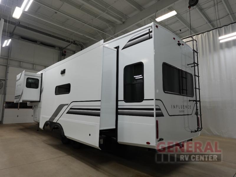 Inside, the Influence 3003RL is designed to sleep up to four people comfortably, making it ideal for small families or couples seeking a getaway. The interior boasts high-quality finishes and modern amenities, including a fully equipped kitchen, a cozy living area, and a well-appointed bathroom. The thoughtful layout maximizes space, ensuring you have everything you need for a comfortable stay, whether you're on a weekend trip or an extended journey.
