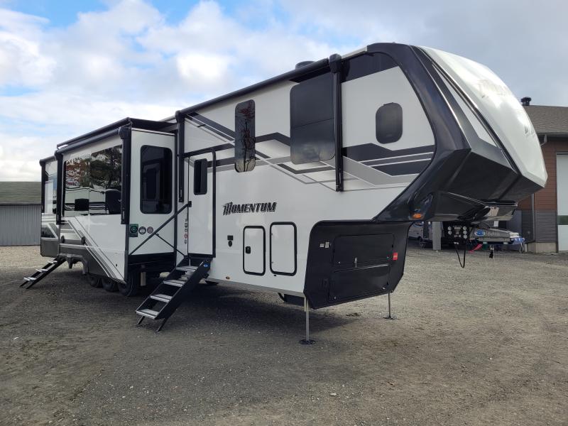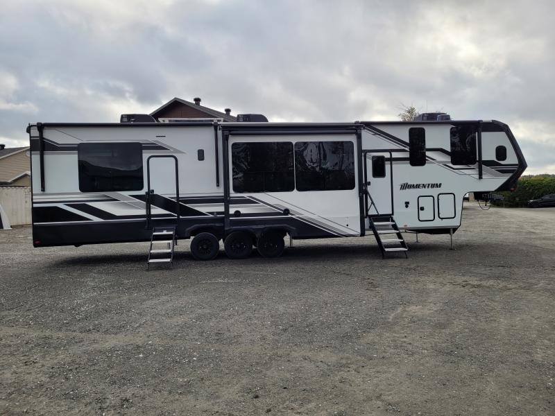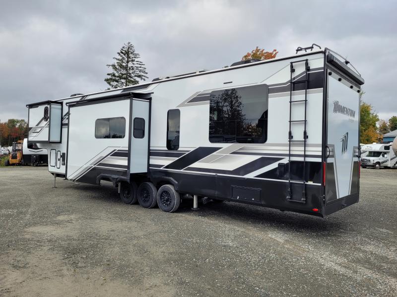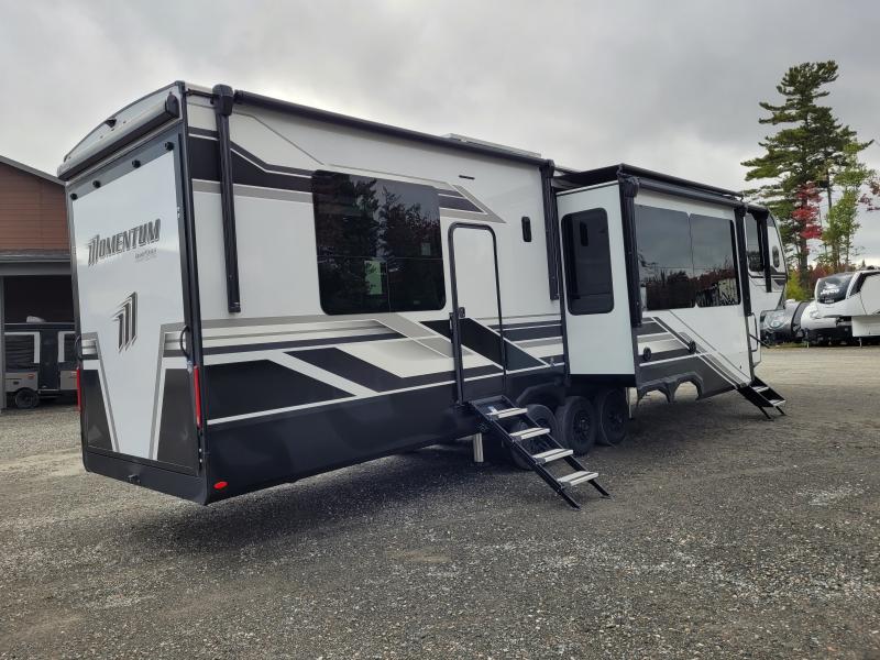The interior of the Momentum 395MS is a testament to Grand Design's commitment to quality and sophistication. The spacious living area is adorned with premium furnishings and state-of-the-art amenities, ensuring a comfortable and enjoyable experience. The kitchen is equipped with top-of-the-line appliances, including a full-size refrigerator and a high-efficiency oven, making meal preparation a delight. The master suite offers a tranquil retreat with a king-size bed and ample storage space, while the bathroom features a luxurious shower and modern fixtures.