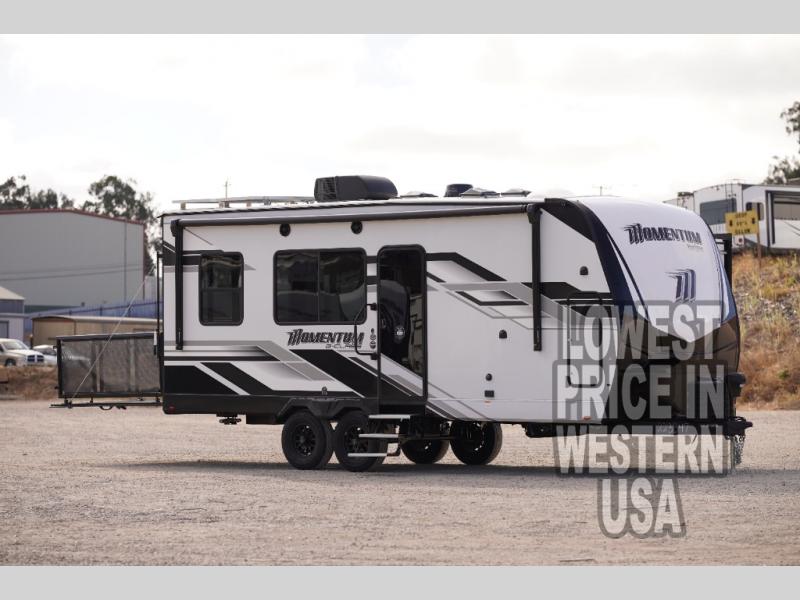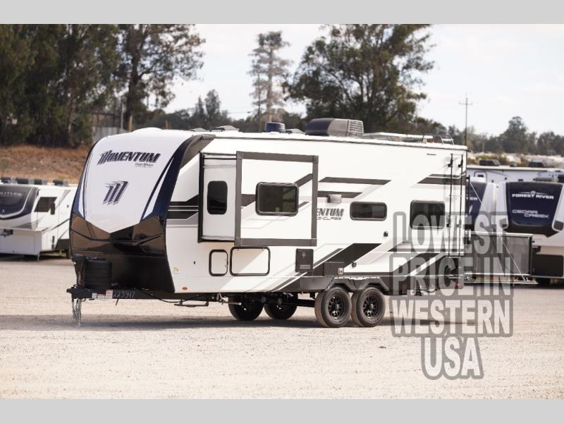Measuring an impressive 22 feet in length, the Momentum G-Class 21G is compact yet spacious, making it ideal for both short getaways and extended road trips. The single slide-out expands your living space, providing ample room for relaxation and entertainment. Inside, you'll find comfortable sleeping accommodations for up to four people, ensuring everyone enjoys a restful night's sleep after a day of adventure. The thoughtfully designed interior boasts modern amenities and high-quality finishes, creating a cozy and inviting atmosphere.