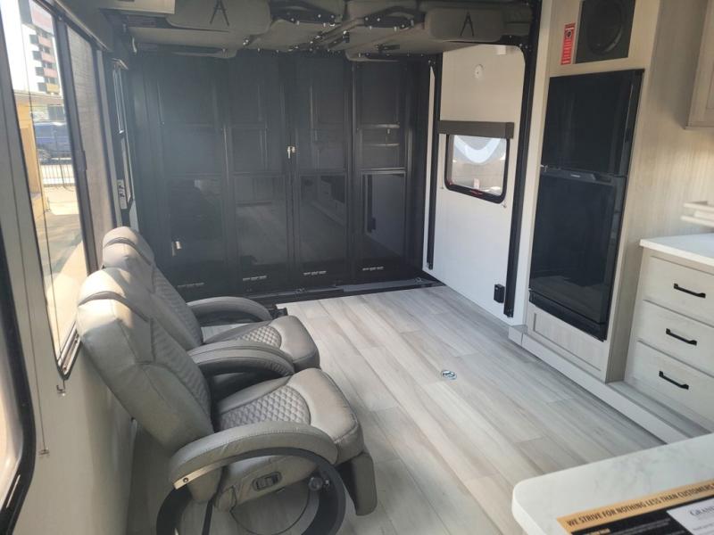 The Momentum 25G is designed with the modern traveler in mind, featuring a spacious interior that seamlessly blends style and convenience. The living area is adorned with high-quality furnishings and state-of-the-art appliances, ensuring a comfortable and enjoyable stay. The kitchen is equipped with top-of-the-line amenities, including a full-sized refrigerator, a sleek stovetop, and a microwave, allowing you to prepare gourmet meals on the go. The sleeping quarters offer a serene retreat, with plush bedding and ample storage space to accommodate all your belongings.