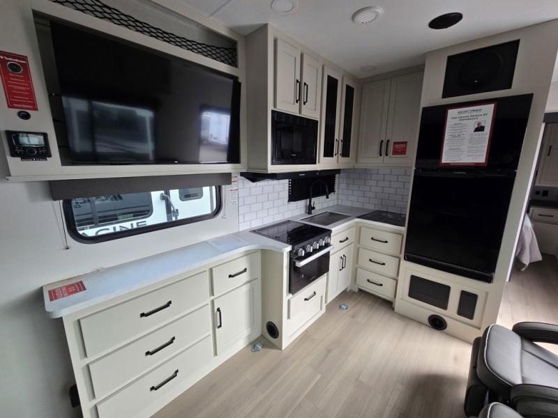 The Momentum G-Class 27G features a single slide-out, ingeniously expanding the living space to create a roomy and inviting interior. Accommodating up to four occupants, this RV is ideal for families or small groups of friends. The thoughtfully designed layout ensures that every inch of space is utilized efficiently, providing ample room for relaxation and entertainment. The high-quality furnishings and modern amenities reflect Grand Design's commitment to excellence, ensuring a comfortable and enjoyable journey.