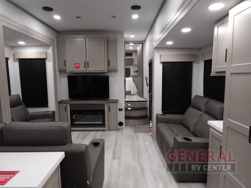 The Momentum G-Class 415G boasts three expansive slide-outs, providing a spacious interior that can comfortably accommodate up to five people. Whether you're embarking on a family vacation or a getaway with friends, this RV ensures everyone has their own space to relax and unwind. The thoughtfully designed layout includes a well-appointed kitchen, a cozy living area, and a luxurious sleeping arrangement, making it a true home away from home.