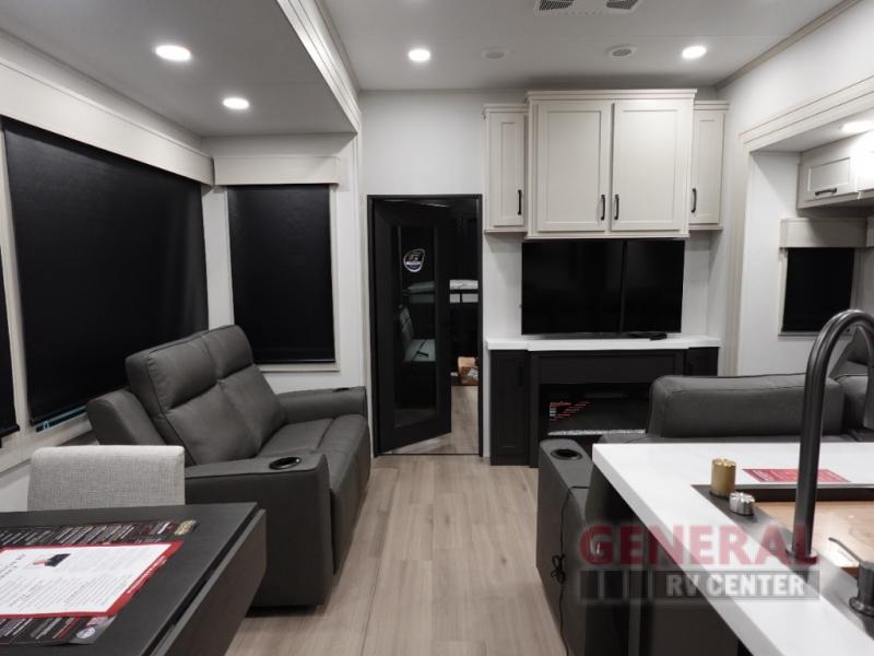 This RV is not just about comfort; it's built for the long haul. With a fuel capacity of 227 liters, you can hit the road with confidence, knowing you have the range to explore far and wide. Weighing in at 7,881 kilograms, this Fifth Wheel is sturdy and reliable, ensuring a smooth ride wherever your travels take you. And let's not forget its impressive length of 37 feet, providing you with all the space you need without compromising on maneuverability.
