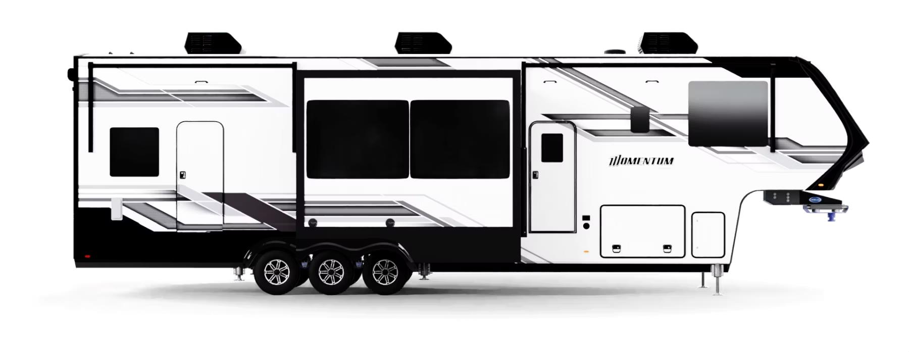 The Momentum M-Class 399M features three expansive slide-outs, significantly enhancing the interior living space. This RV comfortably accommodates up to six people, providing a perfect blend of privacy and communal areas. The thoughtfully designed layout includes a master bedroom, a versatile living area, and a well-equipped kitchen, ensuring that every journey is as comfortable as being at home. The high-quality finishes and modern amenities make this RV a true home on wheels, allowing you to explore the great outdoors without sacrificing the comforts of modern living.