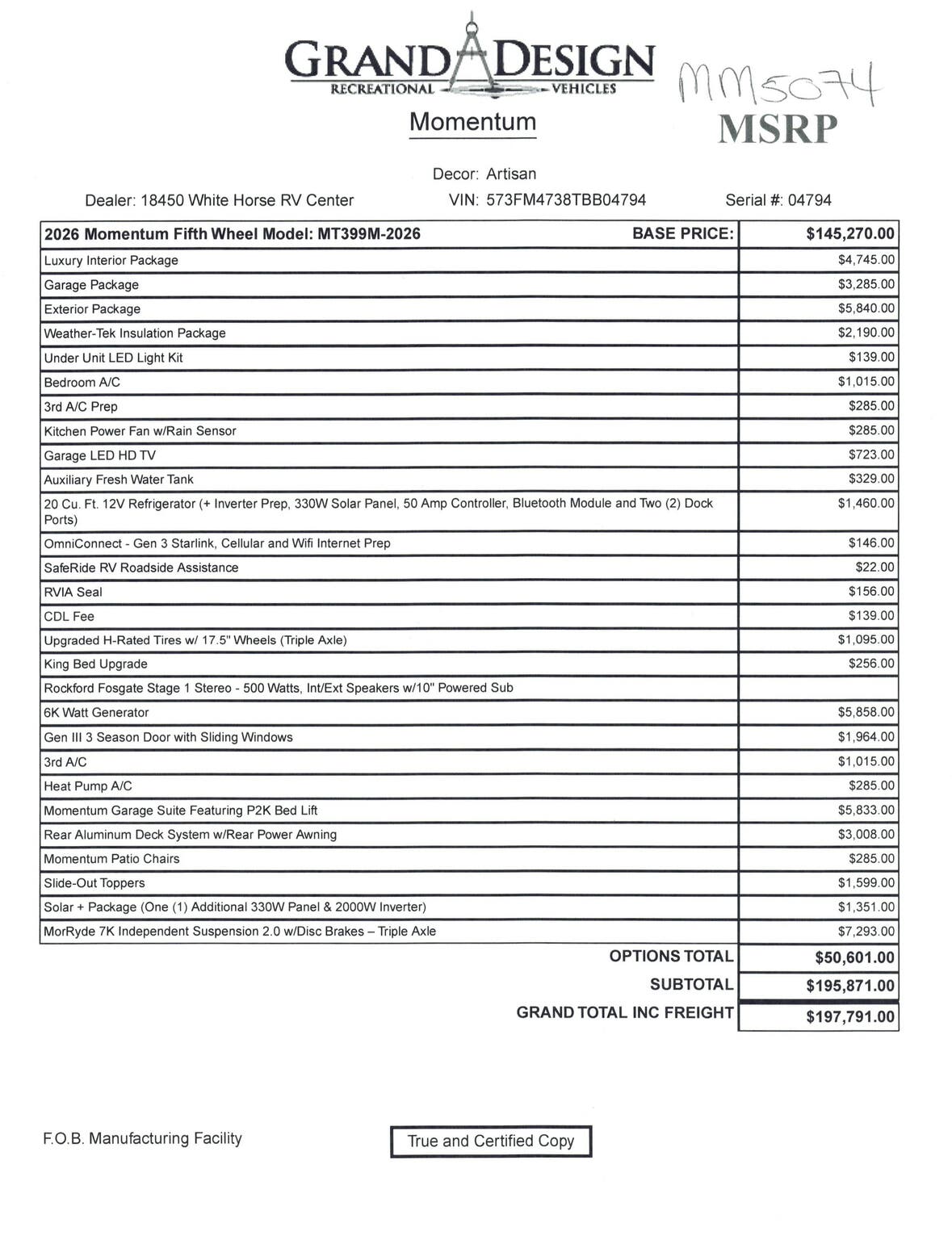 Weighing in at 10,215 kilograms, the Grand Design Momentum M-Class 399M is built with durability and safety in mind. Its robust construction ensures stability and reliability on the road, while the spacious toy hauler garage provides ample room for your recreational gear, whether it be motorcycles, ATVs, or bicycles. This RV is not just a vehicle; it’s a gateway to adventure, offering the freedom to explore new horizons with all the comforts of home. Experience the ultimate in RV living with the 2026 Grand Design Momentum M-Class 399M ToyHauler.