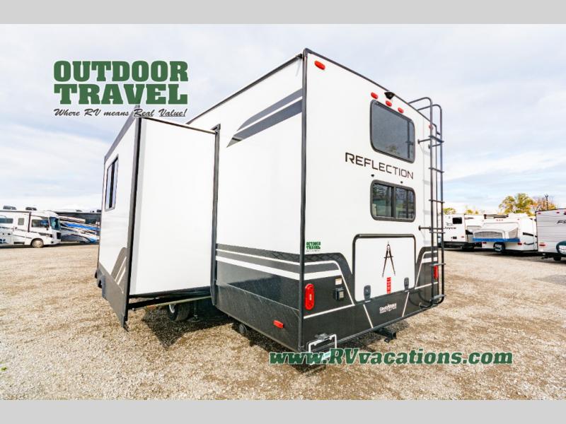 Measuring approximately 27 feet in length, the Reflection 27BH is thoughtfully designed to maximize space and functionality. The single slide-out expands your living area, providing ample room for relaxation and entertainment. Inside, you'll find a well-equipped kitchen, a comfortable dining area, and a cozy living space, all crafted with high-quality materials and finishes. The clever layout ensures that everyone has their own space, making it easy to enjoy both privacy and togetherness.
