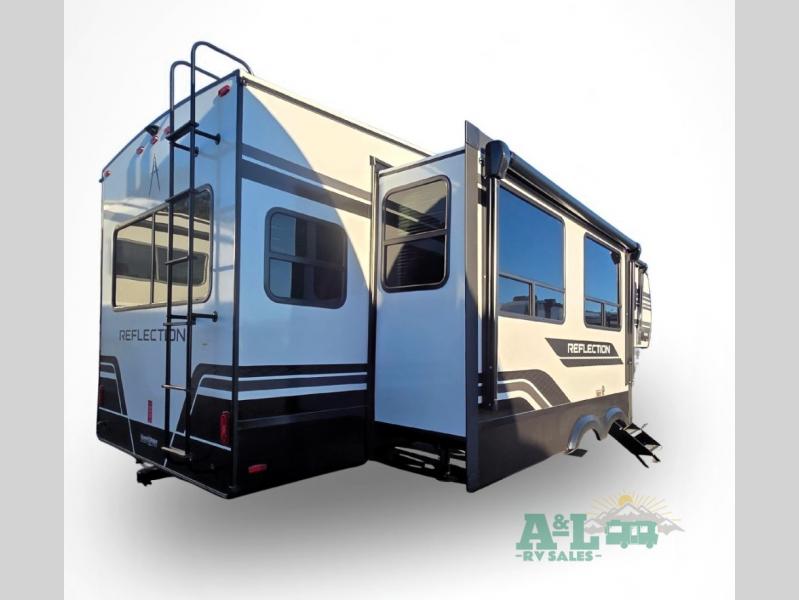 The Reflection 303RLS features three spacious slide-outs, significantly enhancing the living space and providing a roomy, open feel that is rare in the RV world. Inside, you'll find accommodations to comfortably sleep up to five people, making it perfect for family trips or getaways with friends. The interior is thoughtfully designed with high-quality materials and finishes, ensuring a cozy and inviting atmosphere. Whether you're lounging in the living area, preparing meals in the fully-equipped kitchen, or enjoying a restful night's sleep, every aspect of this RV is tailored to meet your needs.