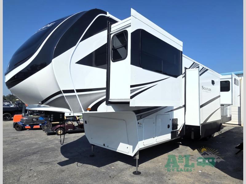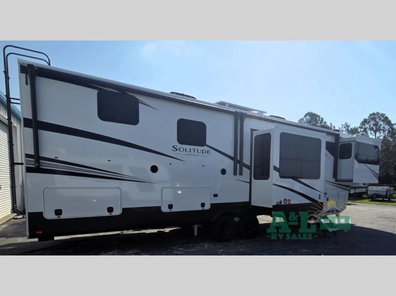 The Solitude 380FL features five slide-outs, ingeniously expanding the living space to create a home-like atmosphere on the road. It comfortably sleeps up to six people, ensuring that everyone has their own cozy retreat. The master suite offers a plush king-size bed, while the additional sleeping areas are designed with comfort in mind, providing restful nights after a day of exploration. The interior is adorned with high-quality finishes and modern amenities, including a fully equipped kitchen, spacious living area, and a luxurious bathroom, all crafted to meet the highest standards of comfort and convenience.