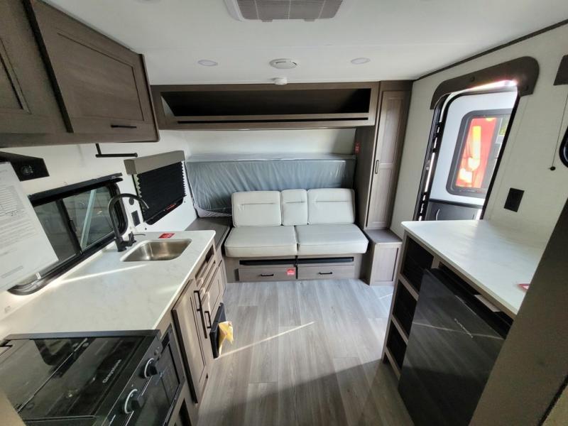 Despite its compact size, this travel trailer is packed with features that make it feel like a home away from home. It comfortably sleeps two, making it perfect for couples or solo adventurers who appreciate a bit of extra space. The interior is thoughtfully designed to maximize comfort and functionality, with a cozy sleeping area, a well-equipped kitchenette, and a compact bathroom. Whether you're whipping up a quick meal or settling in for a good night's sleep, this trailer has got you covered.